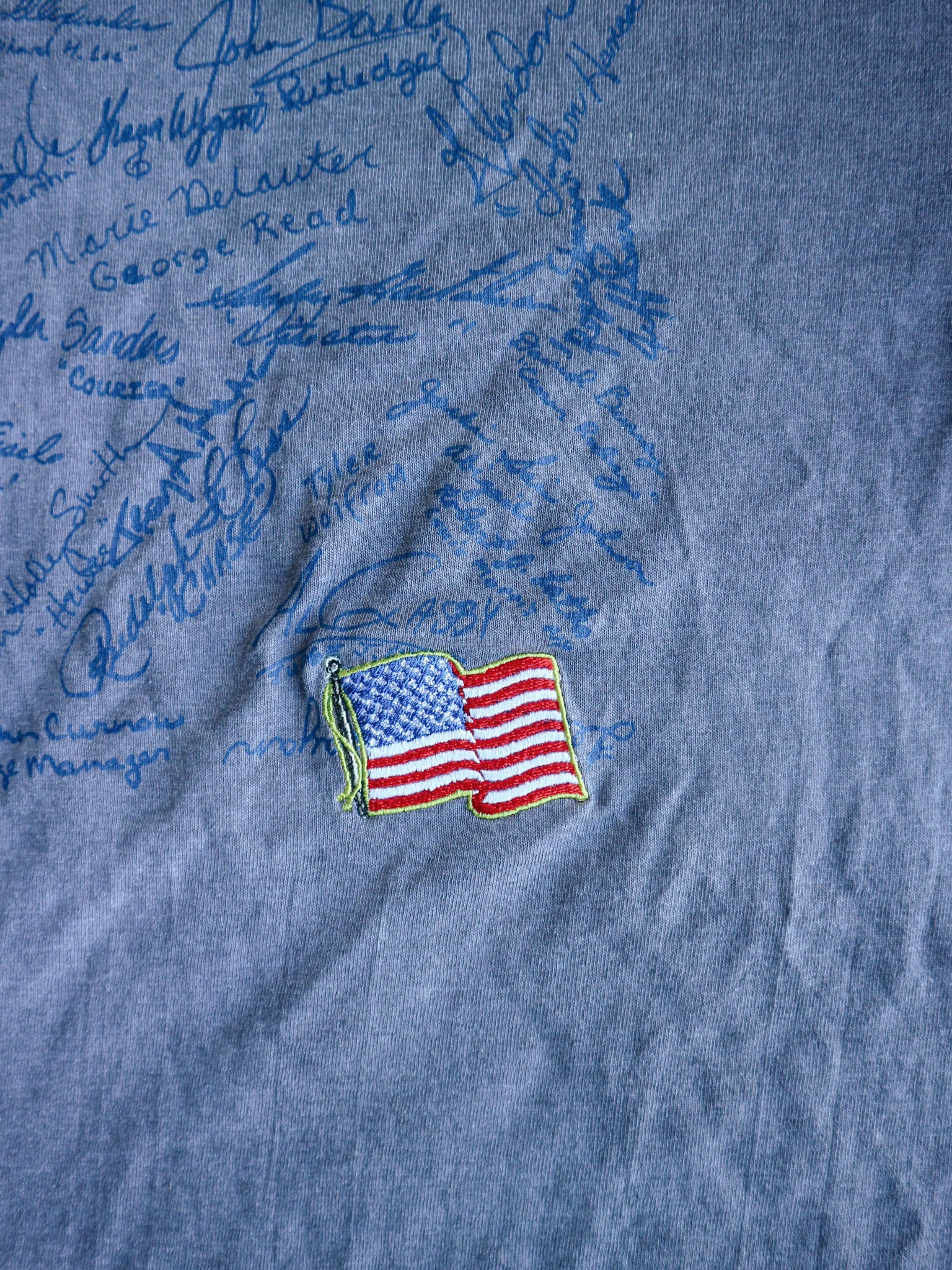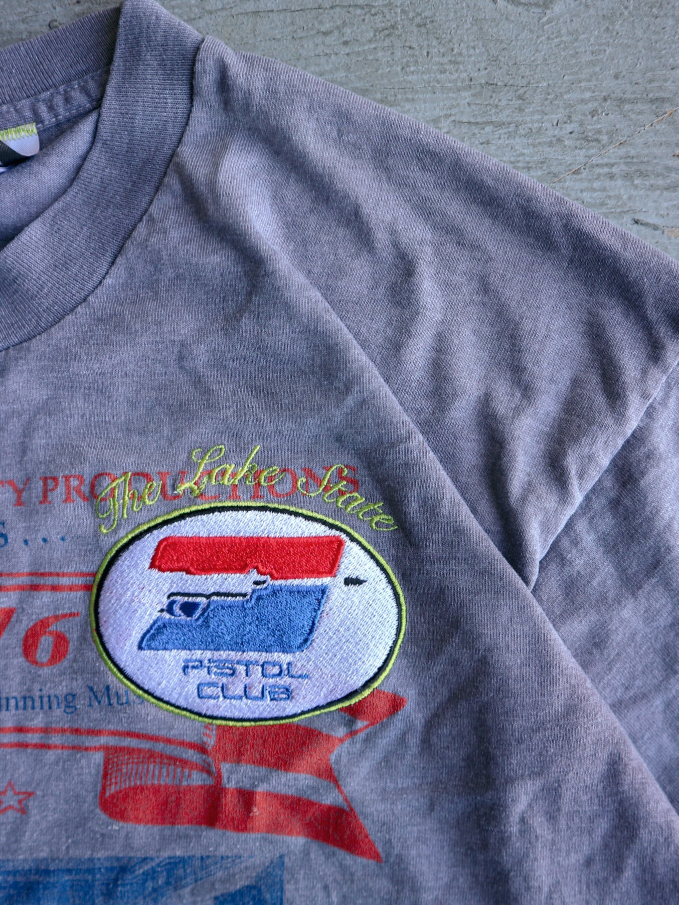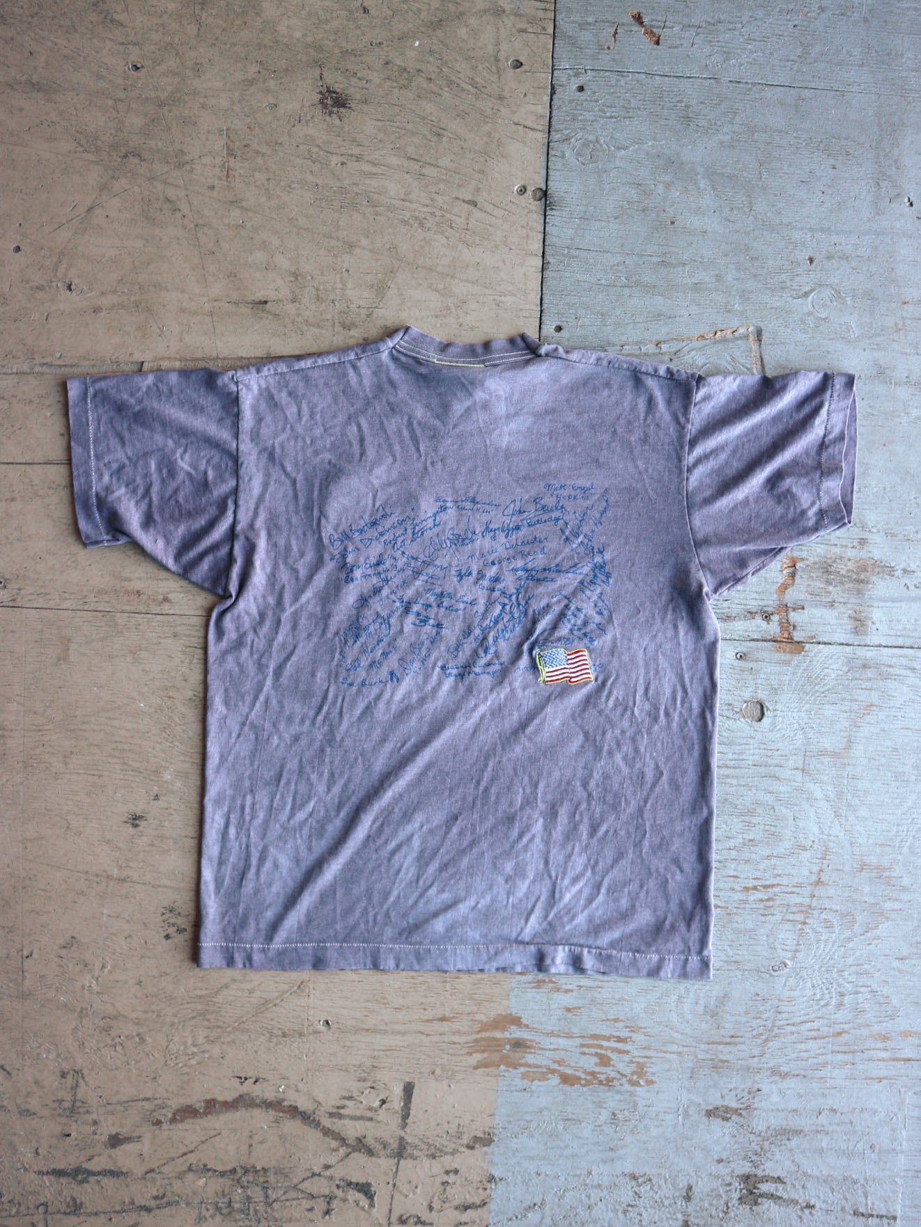 Vintage 1990s single stitch T-shirt. Features include original screen print with embroidery layered over top. This T-shirt is a true to size fit perfect for the small top big bottoms look.