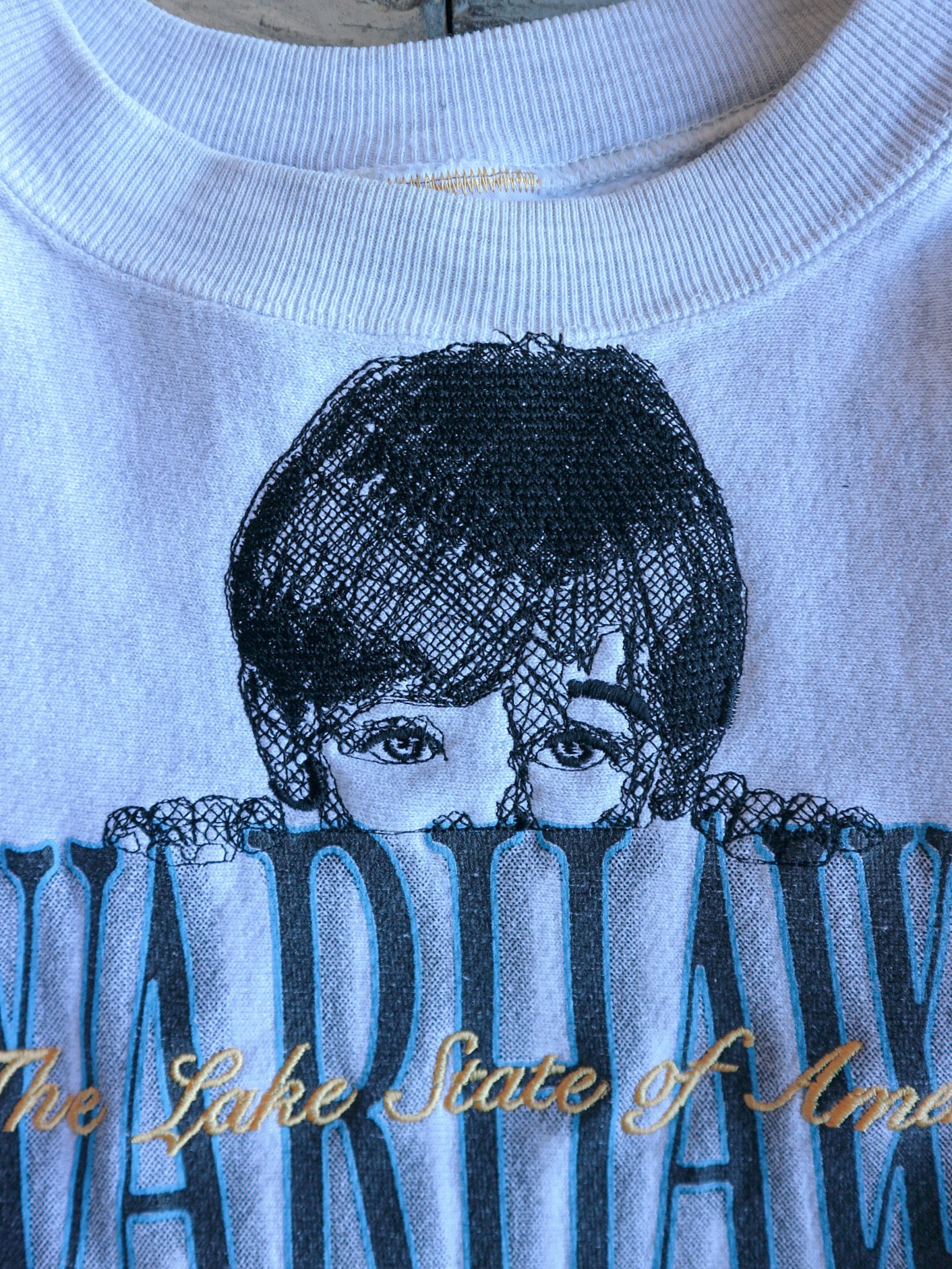 Vintage 90s reverse weave crewneck. Features include the original screen print and detailed realism embroidery and “The Lake State of American” text. The crewneck has been repaired and altered. Fit is cropped and wide.